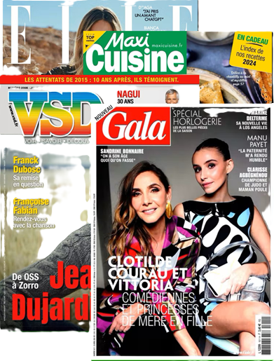 Offrez à vos clients une pause complète : mode et inspiration (Elle), actualité et grands reportages (VSD), glamour et célébrités (Gala), et recettes savoureuses (Maxi Cuisines).